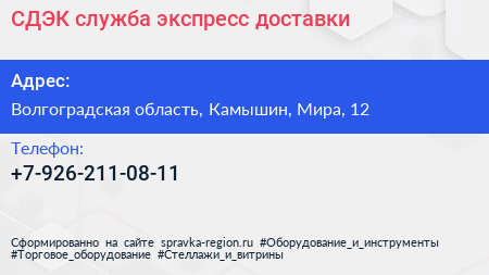 СДЭК, служба экспресс-доставки по адресу Волгоградская область, Камышин, Мира, 12 в дальнейшем Организация, размещена в следующих категориях: