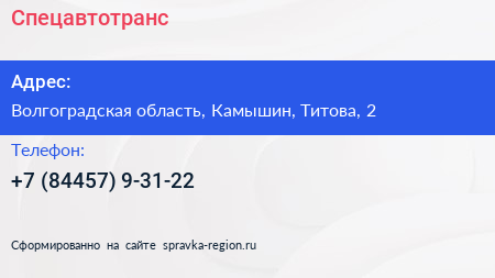 Спецавтотранс по адресу Волгоградская область, Камышин, Титова, 2 в дальнейшем Организация, размещена в следующих категориях: