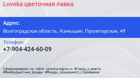 Loveka, цветочная лавка по адресу Волгоградская область, Камышин, Пролетарская, 49 в дальнейшем Организация, размещена в следующих категориях: