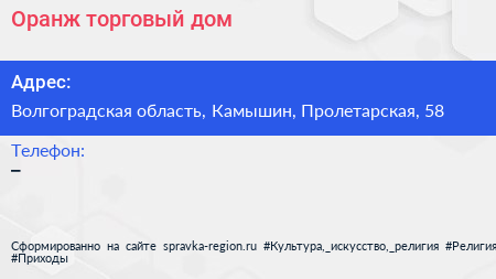 Оранж, торговый дом по адресу Волгоградская область, Камышин, Пролетарская, 58 в дальнейшем Организация, размещена в следующих категориях: