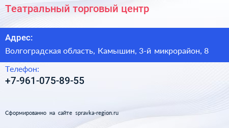 Театральный, торговый центр по адресу Волгоградская область, Камышин, 3-й микрорайон, 8 в дальнейшем Организация, размещена в следующих категориях: