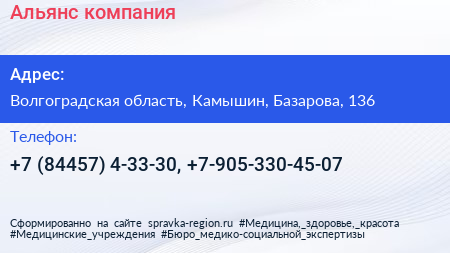Альянс, компания по адресу Волгоградская область, Камышин, Базарова, 136 в дальнейшем Организация, размещена в следующих категориях: