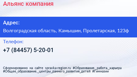 Альянс, компания по адресу Волгоградская область, Камышин, Пролетарская, 123ф в дальнейшем Организация, размещена в следующих категориях: