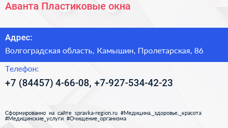Аванта Пластиковые окна по адресу Волгоградская область, Камышин, Пролетарская, 86 в дальнейшем Организация, размещена в следующих категориях: