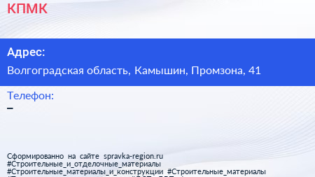 КПМК по адресу Волгоградская область, Камышин, Промзона, 41 в дальнейшем Организация, размещена в следующих категориях:
