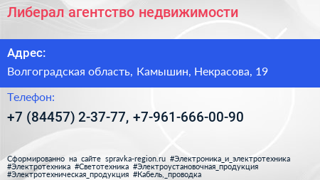 Либерал, агентство недвижимости по адресу Волгоградская область, Камышин, Некрасова, 19 в дальнейшем Организация, размещена в следующих категориях:
