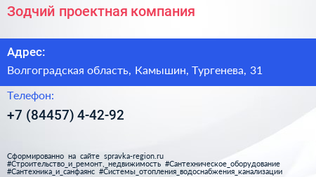 Зодчий, проектная компания по адресу Волгоградская область, Камышин, Тургенева, 31 в дальнейшем Организация, размещена в следующих категориях: