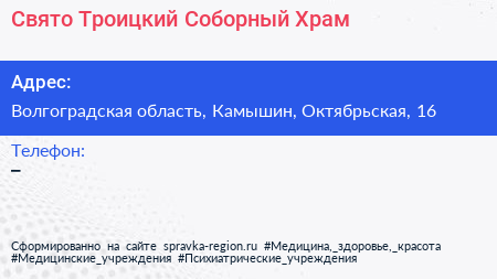 Свято-Троицкий Соборный Храм по адресу Волгоградская область, Камышин, Октябрьская, 16 в дальнейшем Организация, размещена в следующих категориях: