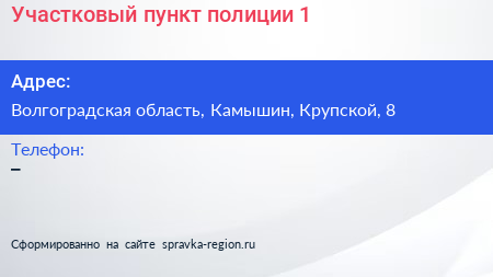 Участковый пункт полиции №1 по адресу Волгоградская область, Камышин, Крупской, 8 в дальнейшем Организация, размещена в следующих категориях: