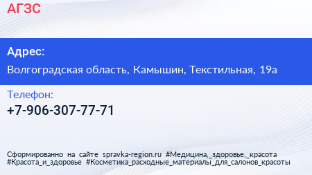 АГЗС по адресу Волгоградская область, Камышин, Текстильная, 19а в дальнейшем Организация, размещена в следующих категориях: