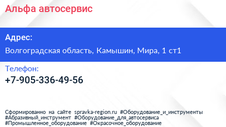 Альфа, автосервис по адресу Волгоградская область, Камышин, Мира, 1 ст1 в дальнейшем Организация, размещена в следующих категориях: