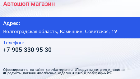 Автошоп, магазин по адресу Волгоградская область, Камышин, Советская, 19 в дальнейшем Организация, размещена в следующих категориях: