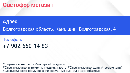 Светофор, магазин по адресу Волгоградская область, Камышин, Волгоградская, 4 в дальнейшем Организация, размещена в следующих категориях: