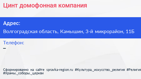 Цинт, домофонная компания по адресу Волгоградская область, Камышин, 3-й микрорайон, 11Б в дальнейшем Организация, размещена в следующих категориях: