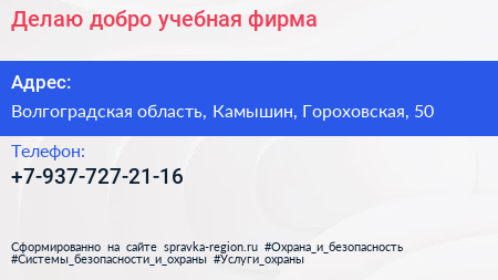 Делаю добро, учебная фирма по адресу Волгоградская область, Камышин, Гороховская, 50 в дальнейшем Организация, размещена в следующих категориях: