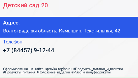 Детский сад №20 по адресу Волгоградская область, Камышин, Текстильная, 42 в дальнейшем Организация, размещена в следующих категориях: