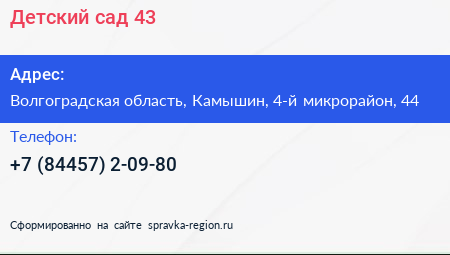 Детский сад №43 по адресу Волгоградская область, Камышин, 4-й микрорайон, 44 в дальнейшем Организация, размещена в следующих категориях: