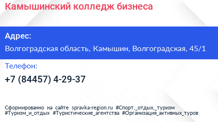 Камышинский колледж бизнеса по адресу Волгоградская область, Камышин, Волгоградская, 45/1 в дальнейшем Организация, размещена в следующих категориях: