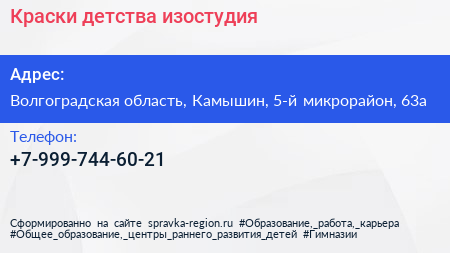 Краски детства, изостудия по адресу Волгоградская область, Камышин, 5-й микрорайон, 63а в дальнейшем Организация, размещена в следующих категориях: