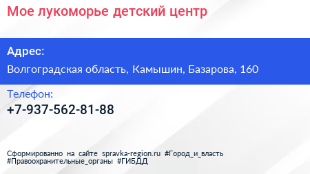 Мое лукоморье, детский центр по адресу Волгоградская область, Камышин, Базарова, 160 в дальнейшем Организация, размещена в следующих категориях: