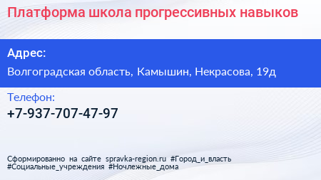 Платформа, школа прогрессивных навыков по адресу Волгоградская область, Камышин, Некрасова, 19д в дальнейшем Организация, размещена в следующих категориях: