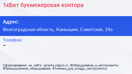 1хБет, букмекерская контора по адресу Волгоградская область, Камышин, Советская, 19а в дальнейшем Организация, размещена в следующих категориях:
