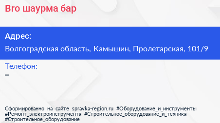 Bro, шаурма-бар по адресу Волгоградская область, Камышин, Пролетарская, 101/9 в дальнейшем Организация, размещена в следующих категориях: