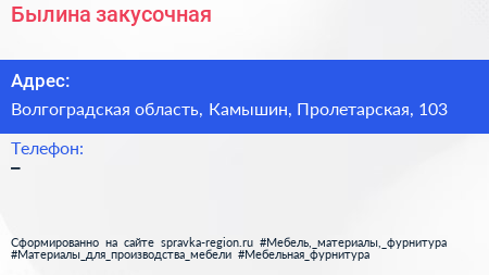Былина, закусочная по адресу Волгоградская область, Камышин, Пролетарская, 103 в дальнейшем Организация, размещена в следующих категориях: