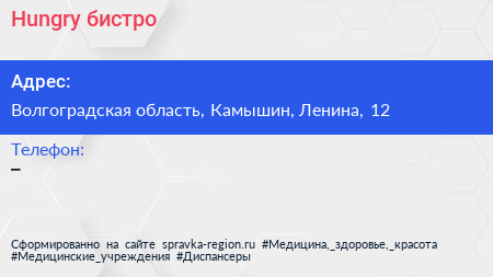 Hungry, бистро по адресу Волгоградская область, Камышин, Ленина, 12 в дальнейшем Организация, размещена в следующих категориях: