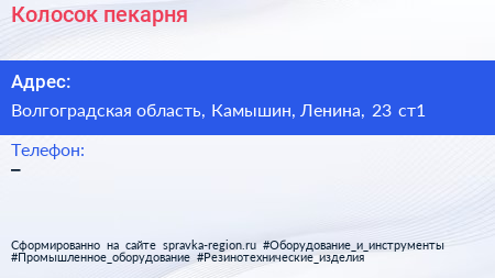 Колосок, пекарня по адресу Волгоградская область, Камышин, Ленина, 23 ст1 в дальнейшем Организация, размещена в следующих категориях: