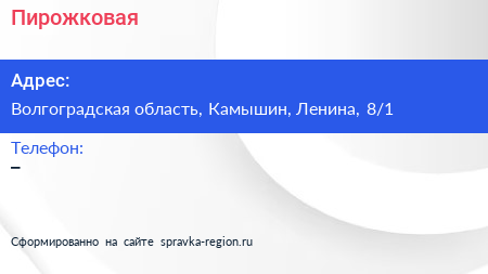 Пирожковая по адресу Волгоградская область, Камышин, Ленина, 8/1 в дальнейшем Организация, размещена в следующих категориях:
