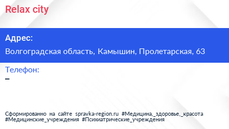 Relax city по адресу Волгоградская область, Камышин, Пролетарская, 63 в дальнейшем Организация, размещена в следующих категориях: