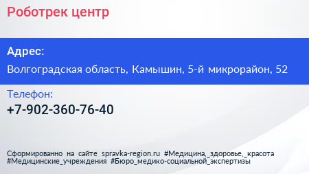 Роботрек, центр по адресу Волгоградская область, Камышин, 5-й микрорайон, 52 в дальнейшем Организация, размещена в следующих категориях: