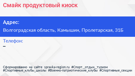 Смайк, продуктовый киоск по адресу Волгоградская область, Камышин, Пролетарская, 31Б в дальнейшем Организация, размещена в следующих категориях: