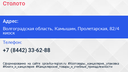 Столото по адресу Волгоградская область, Камышин, Пролетарская, 82/4 киоск в дальнейшем Организация, размещена в следующих категориях: