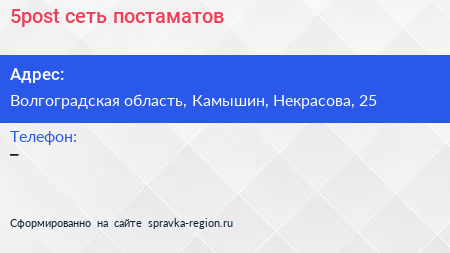 5post, сеть постаматов по адресу Волгоградская область, Камышин, Некрасова, 25 в дальнейшем Организация, размещена в следующих категориях: