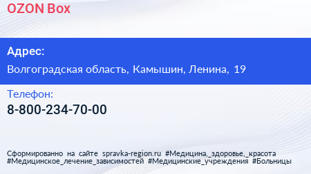 OZON Box по адресу Волгоградская область, Камышин, Ленина, 19 в дальнейшем Организация, размещена в следующих категориях: