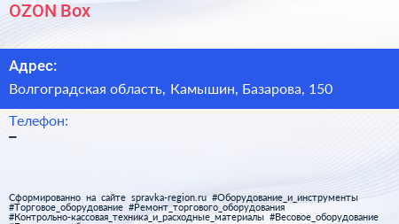 OZON Box по адресу Волгоградская область, Камышин, Базарова, 150 в дальнейшем Организация, размещена в следующих категориях:
