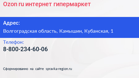 Ozon.ru, интернет-гипермаркет по адресу Волгоградская область, Камышин, Кубанская, 1 в дальнейшем Организация, размещена в следующих категориях: