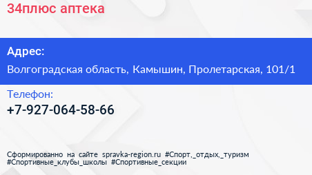 34плюс, аптека по адресу Волгоградская область, Камышин, Пролетарская, 101/1 в дальнейшем Организация, размещена в следующих категориях:
