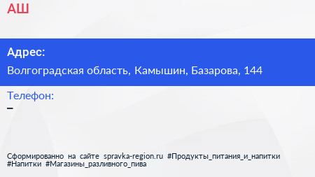 АШ по адресу Волгоградская область, Камышин, Базарова, 144 в дальнейшем Организация, размещена в следующих категориях:
