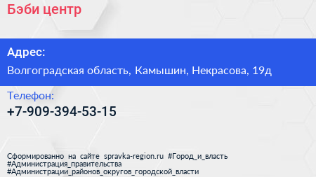 Бэби-центр по адресу Волгоградская область, Камышин, Некрасова, 19д в дальнейшем Организация, размещена в следующих категориях: