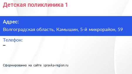 Детская поликлиника №1 по адресу Волгоградская область, Камышин, 5-й микрорайон, 59 в дальнейшем Организация, размещена в следующих категориях: