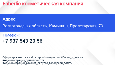 Faberlic, косметическая компания по адресу Волгоградская область, Камышин, Пролетарская, 70 в дальнейшем Организация, размещена в следующих категориях: