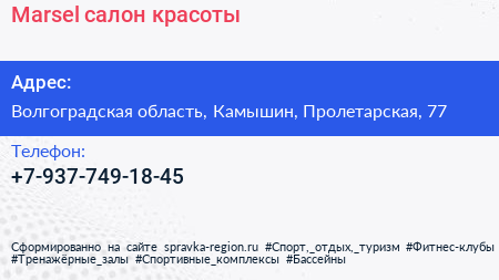 Marsel, салон красоты по адресу Волгоградская область, Камышин, Пролетарская, 77 в дальнейшем Организация, размещена в следующих категориях: