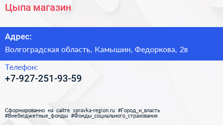 Цыпа, магазин по адресу Волгоградская область, Камышин, Федоркова, 2в в дальнейшем Организация, размещена в следующих категориях: