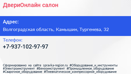ДвериОнлайн, салон по адресу Волгоградская область, Камышин, Тургенева, 32 в дальнейшем Организация, размещена в следующих категориях: