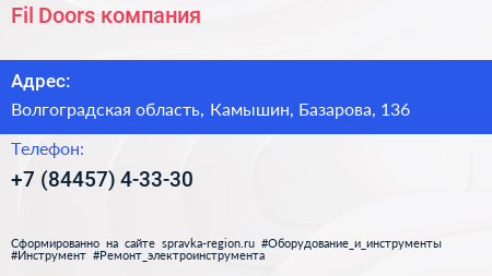 Fil Doors, компания по адресу Волгоградская область, Камышин, Базарова, 136 в дальнейшем Организация, размещена в следующих категориях: