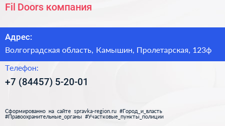 Fil Doors, компания по адресу Волгоградская область, Камышин, Пролетарская, 123ф в дальнейшем Организация, размещена в следующих категориях: