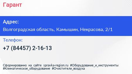 Гарант по адресу Волгоградская область, Камышин, Некрасова, 2/1 в дальнейшем Организация, размещена в следующих категориях: